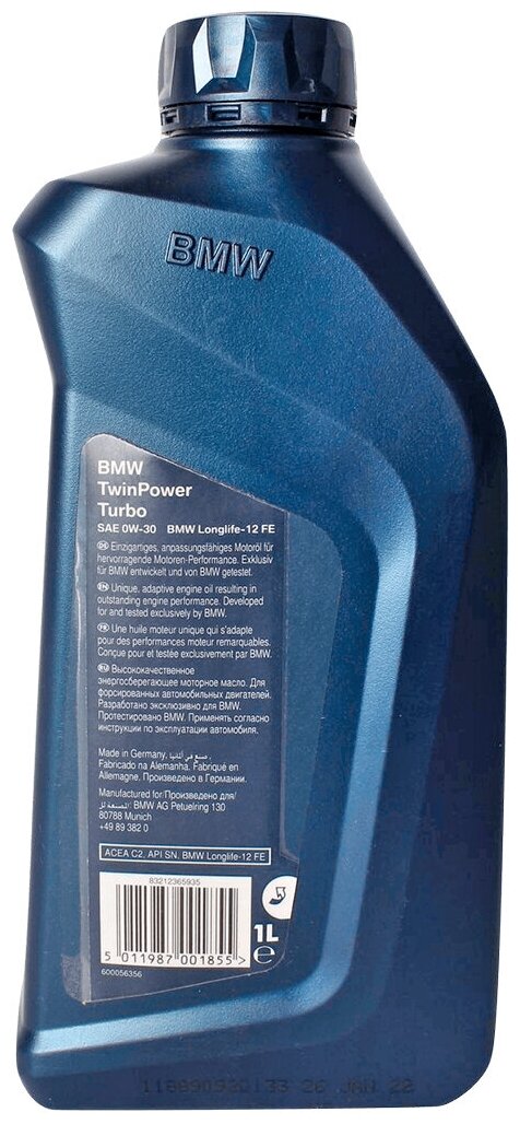 BMW Масло Моторное Bmw Twinpower Turbo Oil Longlife-12 Fe 0w-30 Синтетическое 1 Л 83 21 2 365 935