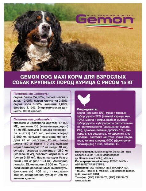 Ниже Вы можете прочитать отзывы на GEMON DOG ADULT MAXI для взрослых собак крупных пород с курицей и рисом (15 кг), ознакомится с подробными характеристиками, посмотреть интересные обзоры и фотографии на GEMON DOG ADULT MAXI для взрослых собак крупных пород с курицей и рисом (15 кг).