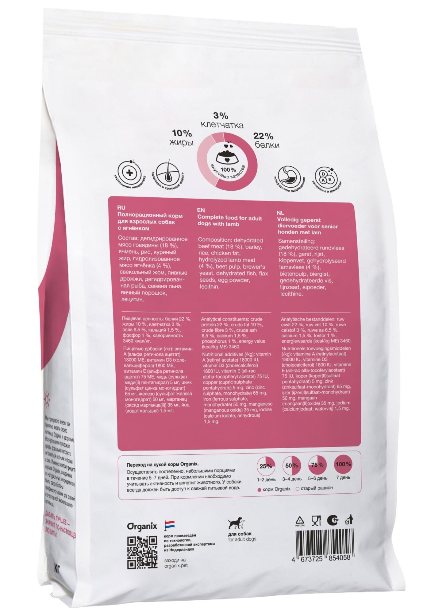 Organix полнорационный сухой корм для взрослых собак всех пород с ягненком и цельным рисом, 2,5 кг