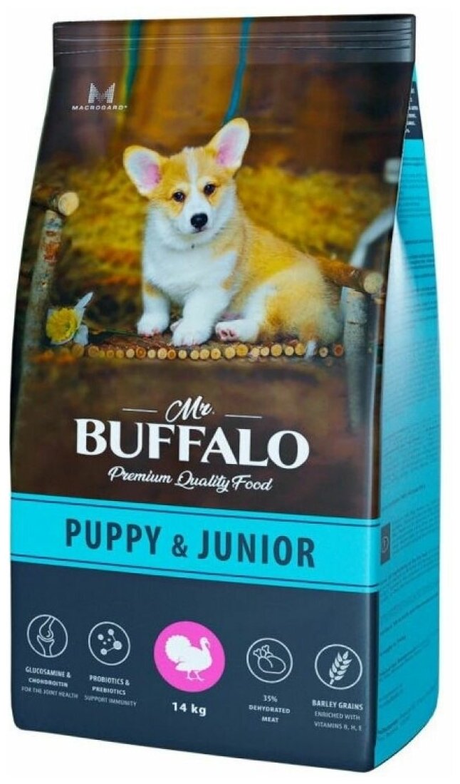 Mr.Buffalo Puppy & Junior полнорационный сухой корм для щенков и юниоров всех пород с индейкой - 14 кг