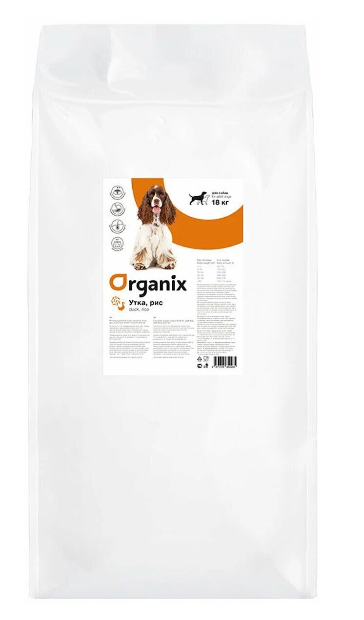 Сухой корм Organix контроль веса для взрослых собак, с уткой и рисом, 18 кг