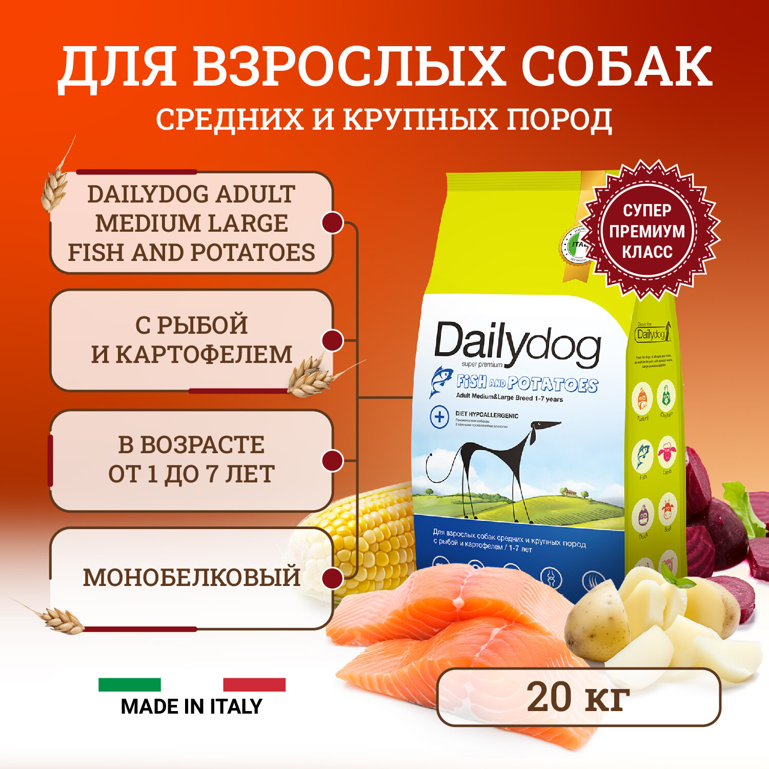 DAILYDOG ADULT MEDIUM LARGE BREED сухой корм для собак средних и крупных пород с рыбой и картофелем (20 кг)