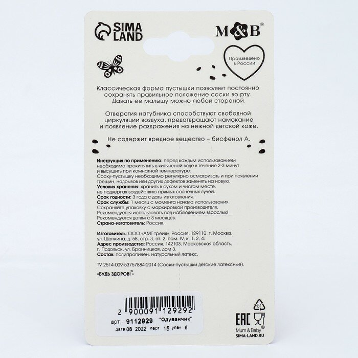Соска - пустышка классическая, латекс, +3мес., «Одуванчик» интересное: