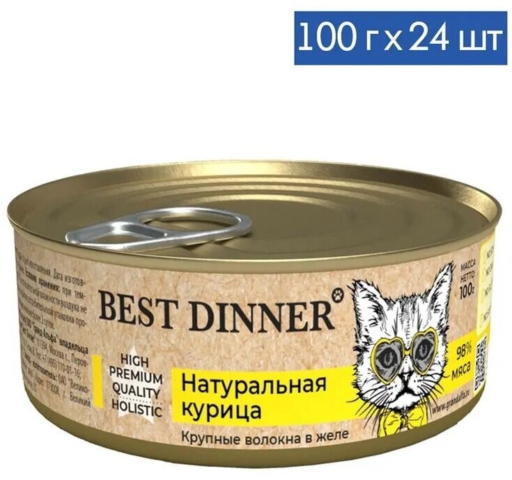 Купить Влажный консервированный корм Best Dinner Бест Диннер для кошек High Premium, натуральная курица в желе, 100 гр. по 24 шт.