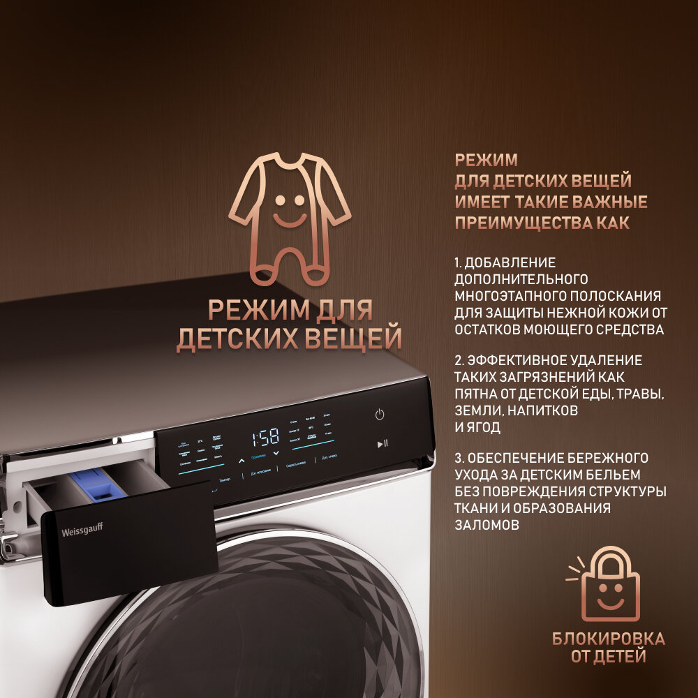 СохранитьФронтальная стиральная машина Weissgauff WM 779 Diamond Inverter Steam интересное: