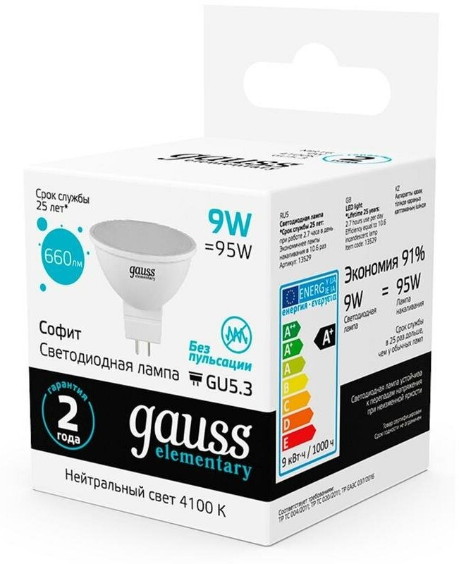 Ниже Вы можете прочитать отзывы на Лампа светодиодная Elementary 9Вт MR16 4100К нейтр. бел. GU5.3 660лм GAUSS 13529, ознакомится с подробными характеристиками, посмотреть интересные обзоры и фотографии на Лампа светодиодная Elementary 9Вт MR16 4100К нейтр. бел. GU5.3 660лм GAUSS 13529.