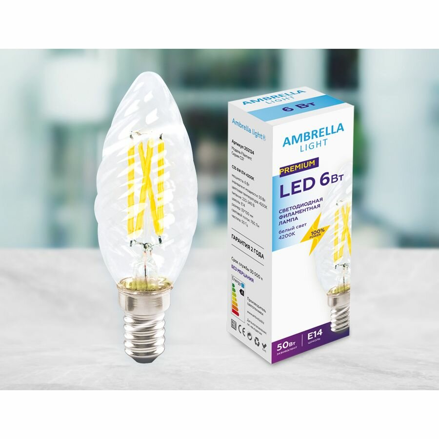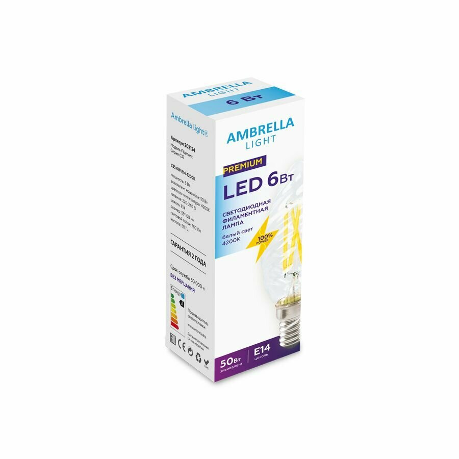 Светодиодная лампа Ambrella Light Filament C35 E14 6W 4200K 202124