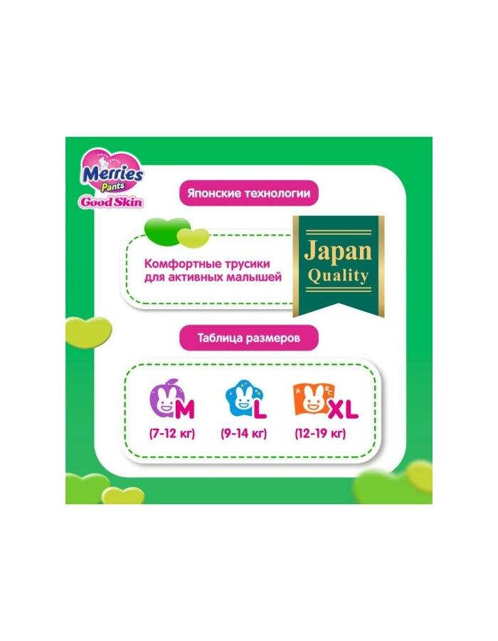 Подгузники-трусики Merries Good Skin XL / 5 (12-19кг), 38 шт, Японские технологии