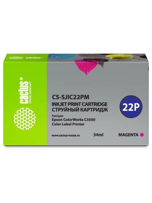 Картридж струйный Cactus CS-SJIC22PM C33S020603 пурпурный (34мл) для Epson ColorWorks C3500 интересное: