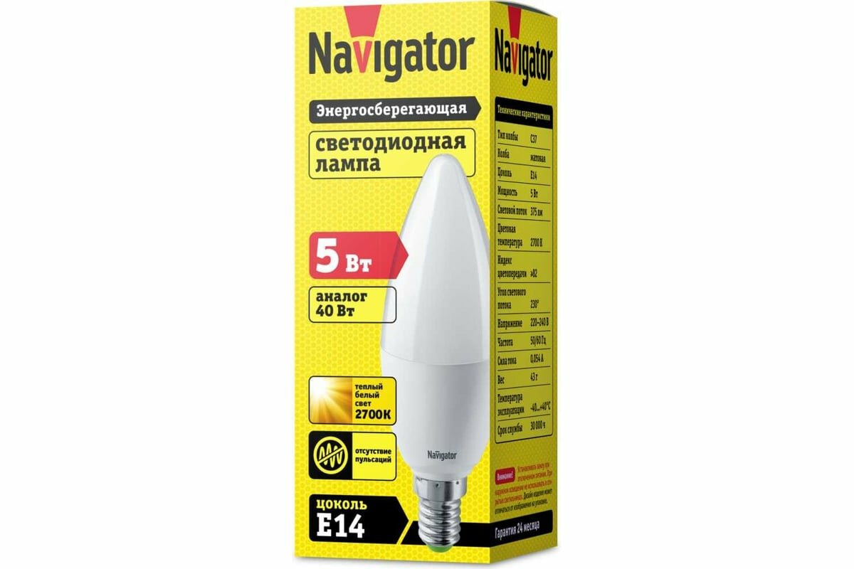 Ниже Вы можете прочитать отзывы на Лампа светодиодная 94 480 NLL-P-C37-5-230-2.7K-E14-FR 5Вт свеча 2700К тепл. бел. E14 330лм 220-240В Navigator 94480, ознакомится с подробными характеристиками, посмотреть интересные обзоры и фотографии на Лампа светодиодная 94 480 NLL-P-C37-5-230-2.7K-E14-FR 5Вт свеча 2700К тепл. бел. E14 330лм 220-240В Navigator 94480.
