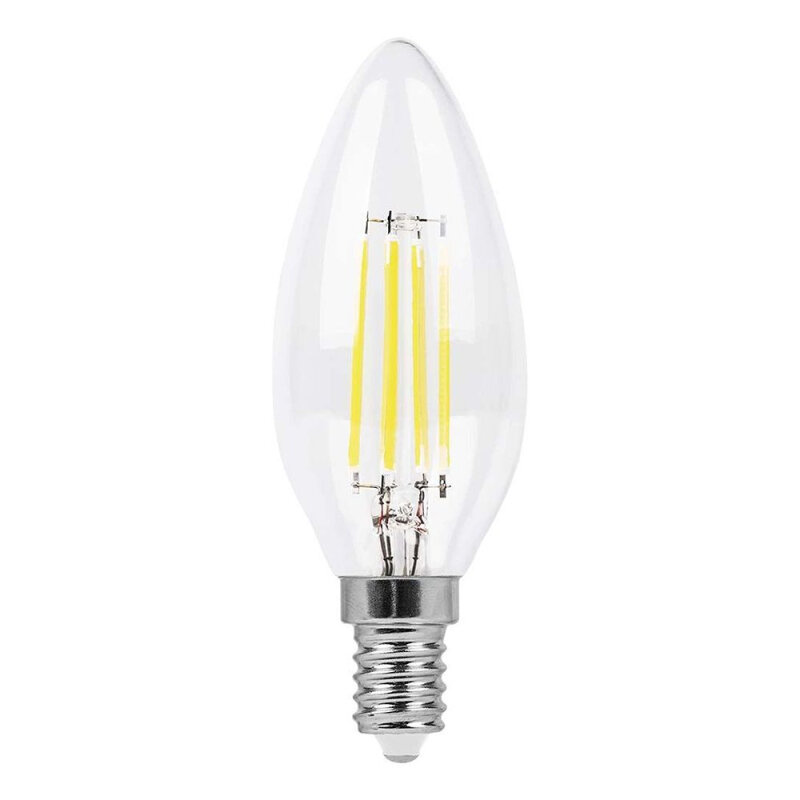 Типы/Лампочки/Филаментные Feron Лампа светодиодная филаментнаядиммируемая Feron Е14 7W 4000K Свеча на ветру Прозрачная LB-166 25871