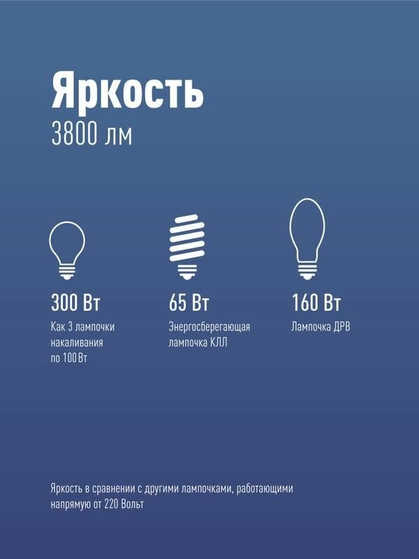 | Эквивалент лампы накаливания | 300 Вт |