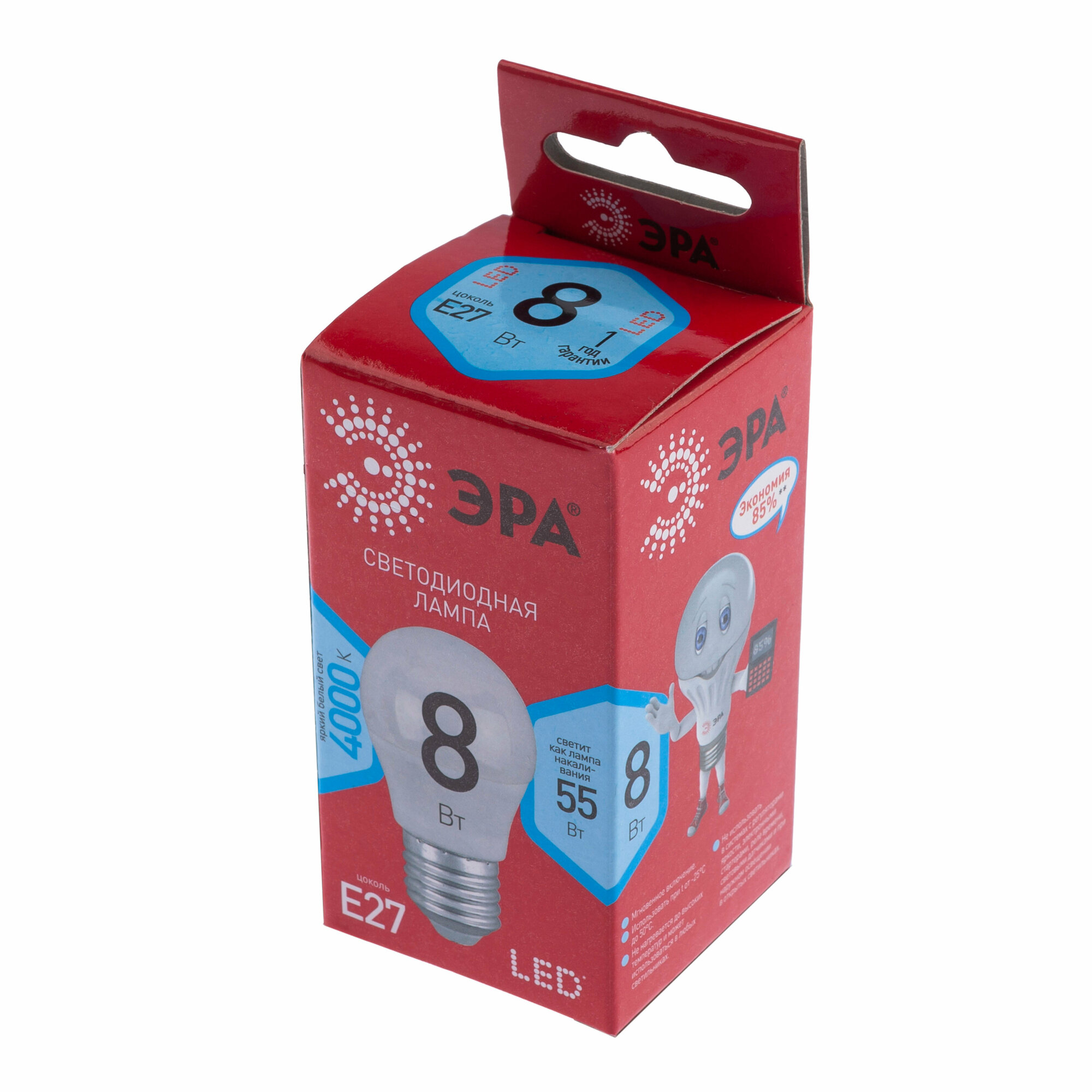 ЭРА ECO шар P45 E27 8W(640lm) 4000K 4K 90х45 P45-8W-840-E27 R 1003