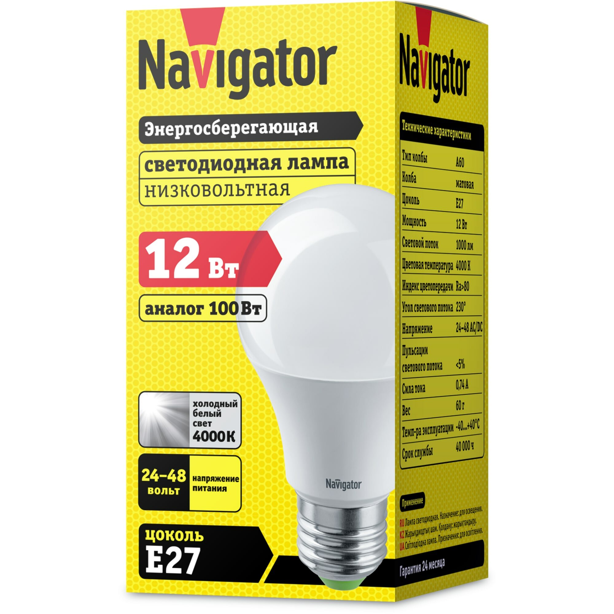 Светодиодная лампа Navigator 61 478 низковольтная 24/48 В, 12 Вт, груша Е27, дневной свет 4000К, 1 шт.