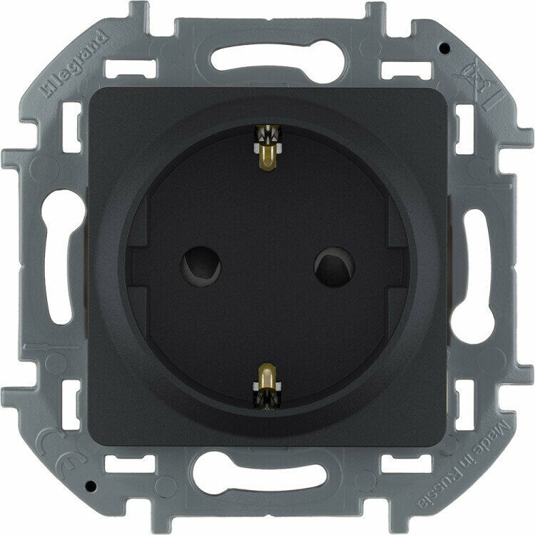 Розетка Legrand Inspiria, скрытый монтаж, с заземлением, со шторками, антрацит, 673733