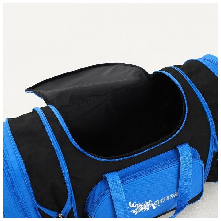 Сумка дорожная на молнии, с увеличением, 3 наружных кармана, цвет чёрный/синий