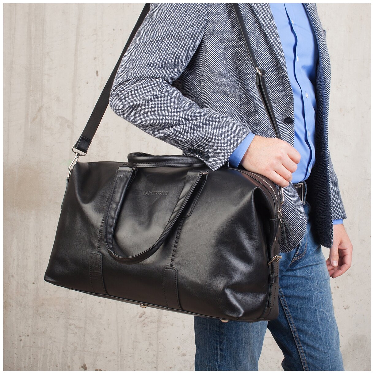 Дорожная сумка из кожи с длинными ручками Lakestone Kennard Black