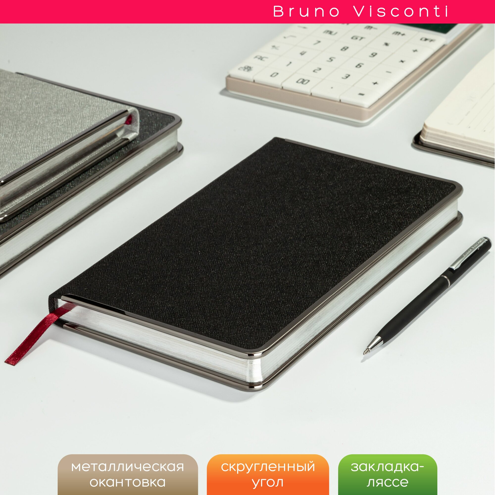 Ежедневник недатированный Bruno Visconti Bridge искусственная кожа А5 136 листов черный (серебристый обрез, 130×212 мм)