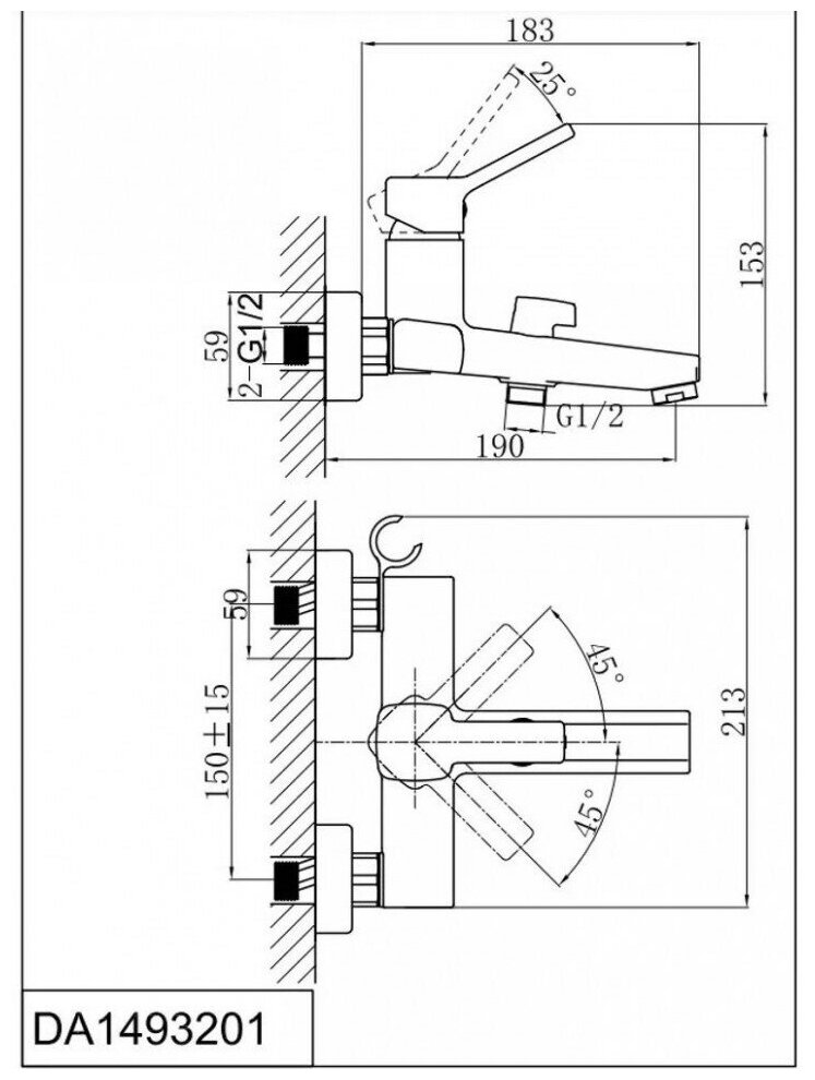 Смеситель для ванны с душем DK Rhein.Dusseldorf (DA1493201)