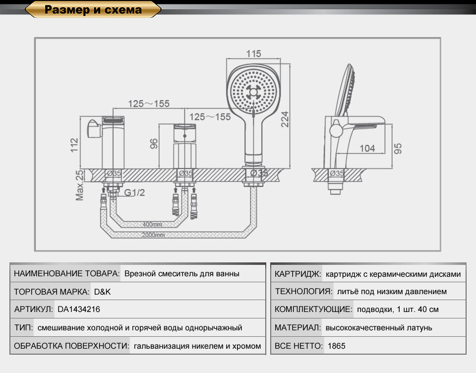 Ниже Вы можете прочитать отзывы на Смеситель для ванны D&K DA1434216, ознакомится с подробными характеристиками, посмотреть интересные обзоры и фотографии на Смеситель для ванны D&K DA1434216.