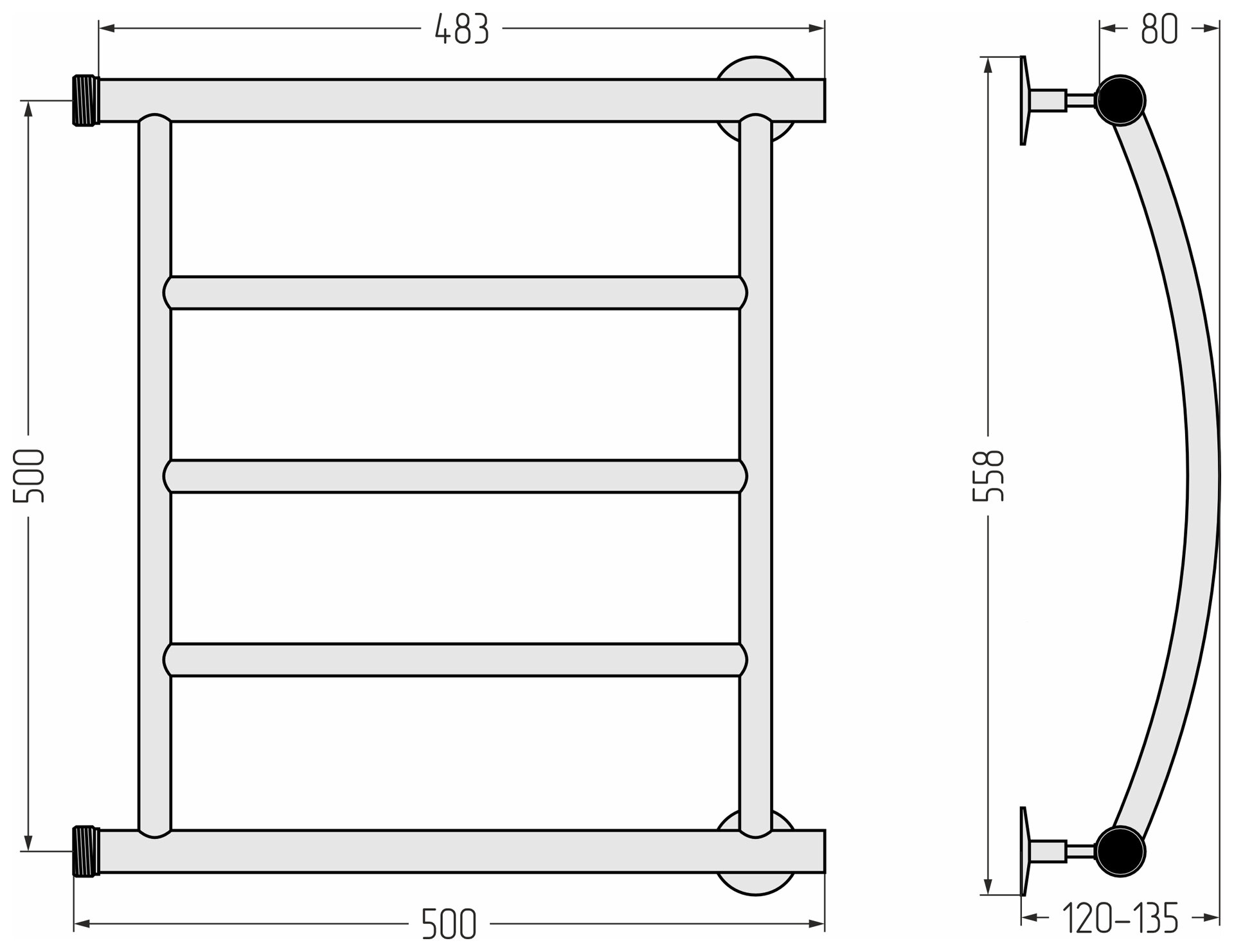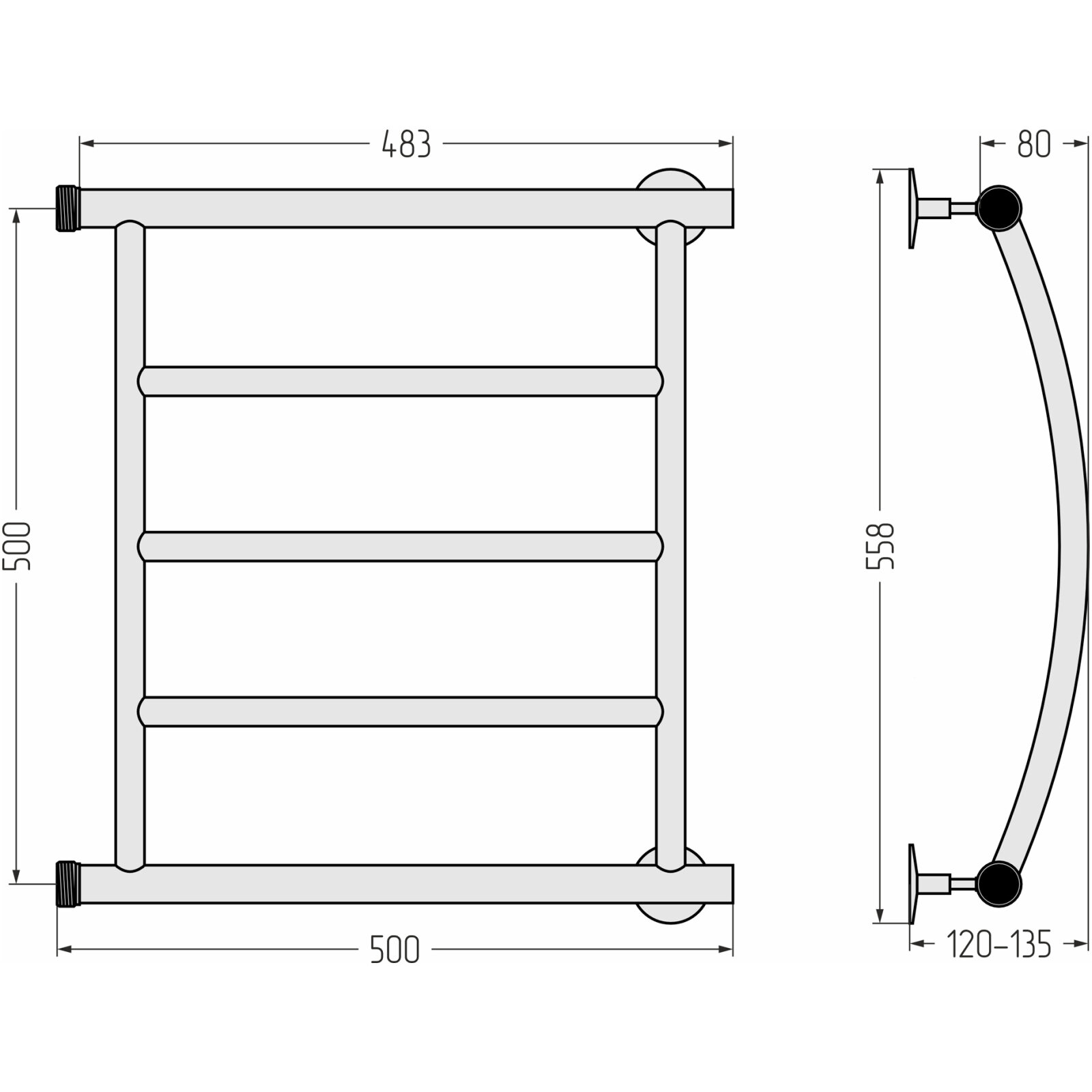 Водяной полотенцесушитель Сунержа 00602-5050 стилье "Минор 0602" Полотенцесушитель 500х500 мм (3) Г, без покрытия