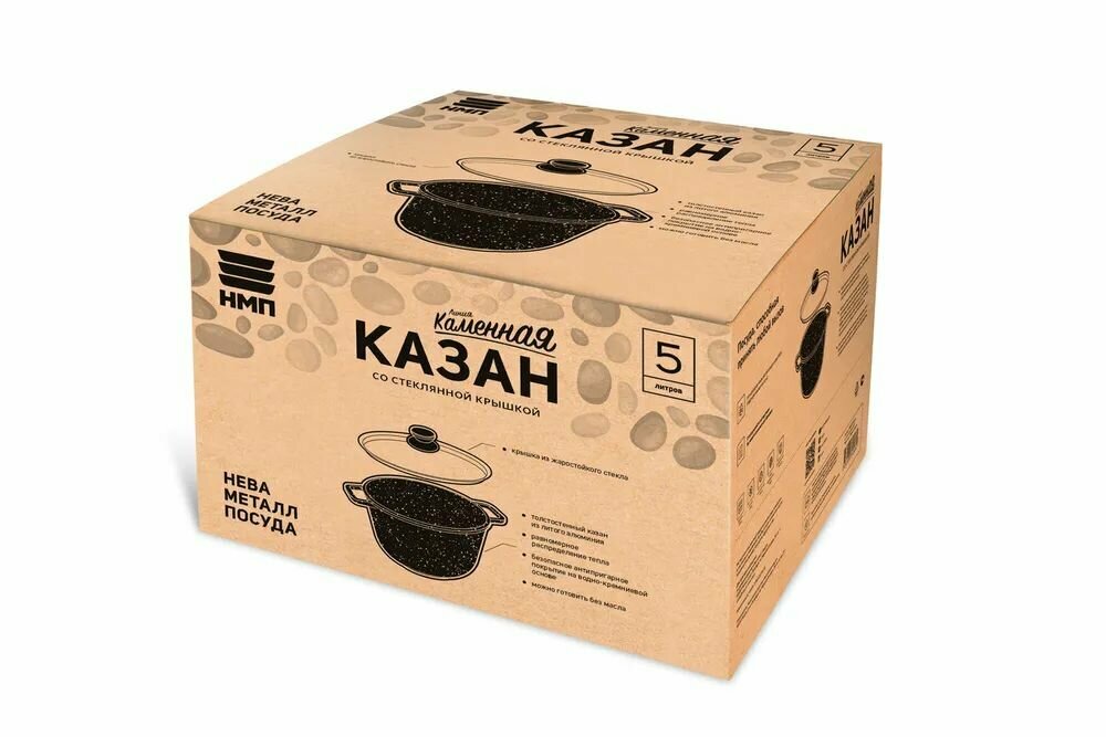 Казан Нева Металл Посуда НМП "Каменная" Чёрный гранит со стеклянной крышкой 5л, 186850