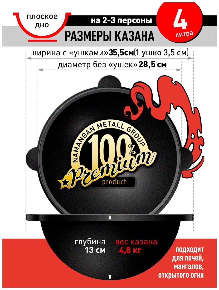 Казан чугунный 4 л Плоское дно + шумовка, половник, специи и книга рецептов / кастрюля для плова / жаровня интересное: