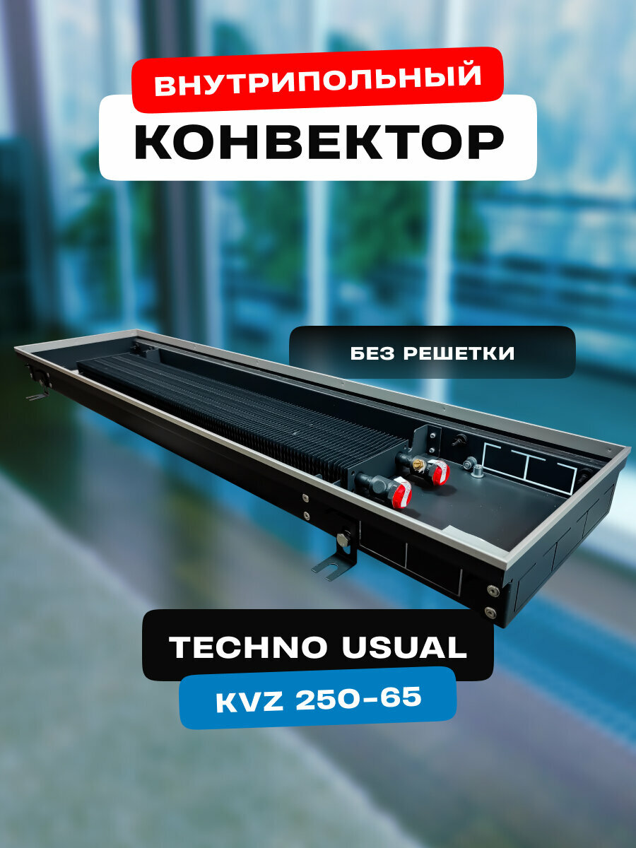 Водяной конвектор с решеткой Techno Usual KVZ 250 - 65 - 1600 мм ( встраиваемый / внутрипольный )