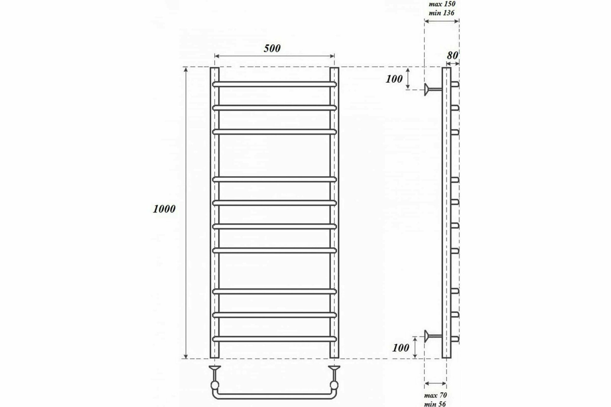 Водяной полотенцесушитель Energy Ideal 800x500