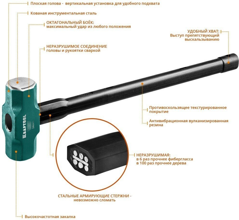 СохранитьKRAFTOOL STEEL FORCE 4 кг кувалда со стальной удлинённой обрезиненной рукояткой интересное: