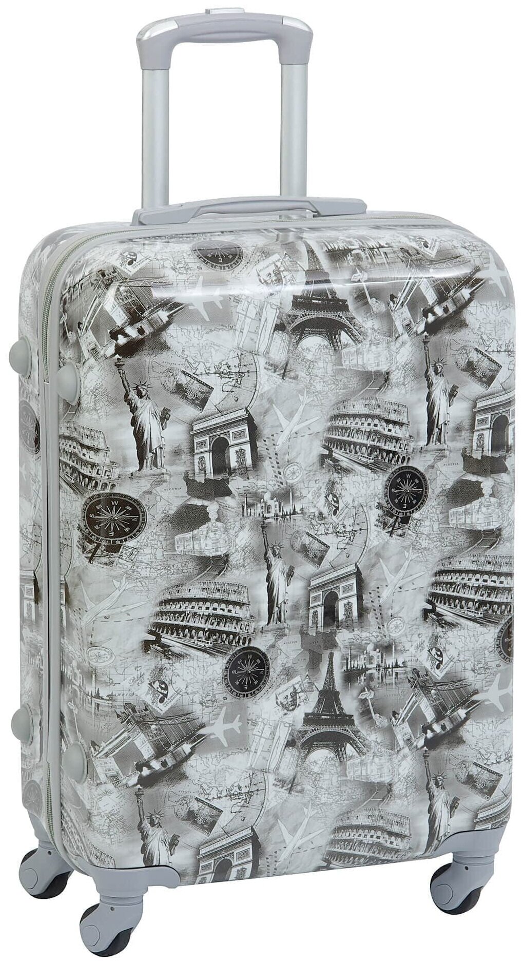 Чемодан на колесах дорожный средний багаж на двоих для путешествий m+ Тевин размер М+ 68 см 77 л легкий и прочный поликарбонат Черный с рисунком