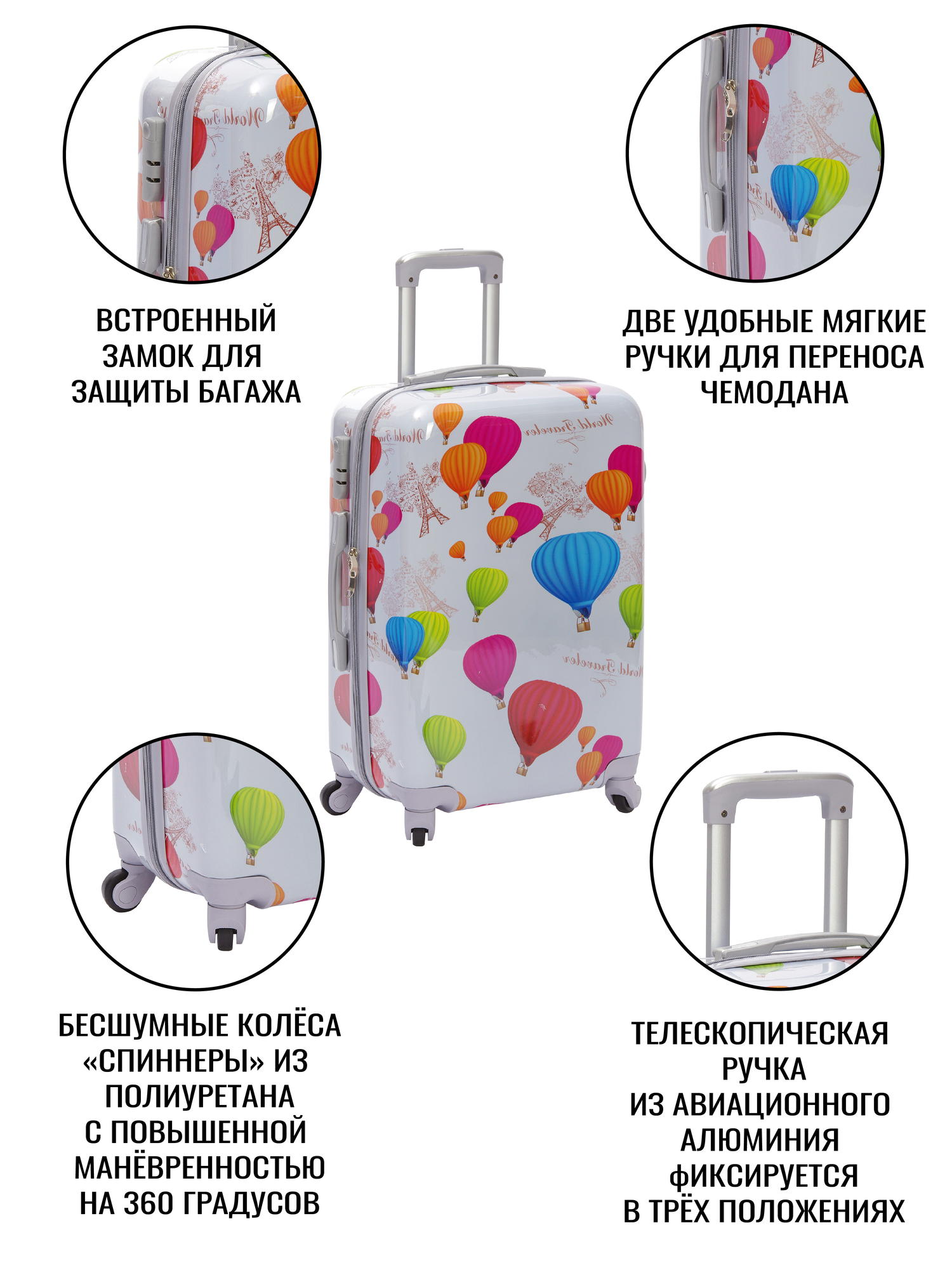 Чемодан на колесах дорожный средний багаж на двоих для путешествий женский m+ Тевин размер М+ 68 см 77 л легкий прочный поликарбонат Белый рисунок