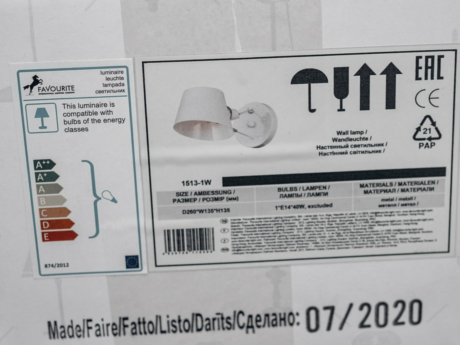 Настенный светильник Favourite Eimer 1513-1W
