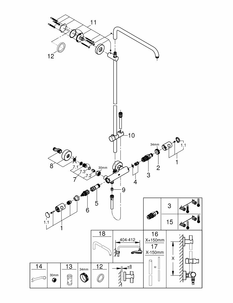 Душевая система с термостатом для настенного монтажа Grohe Euphoria 26241 000 (26241000)
