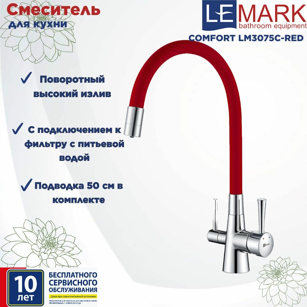 Купить Смеситель Lemark Comfort LM3075C-Red с подключением к фильтру хром/красный .
