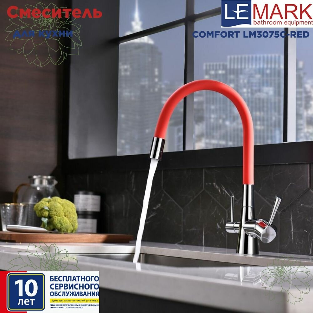 Смеситель Lemark Comfort LM3075C-Red для кухни с гибким изливом, с подключением к фильтру с питьевой водой