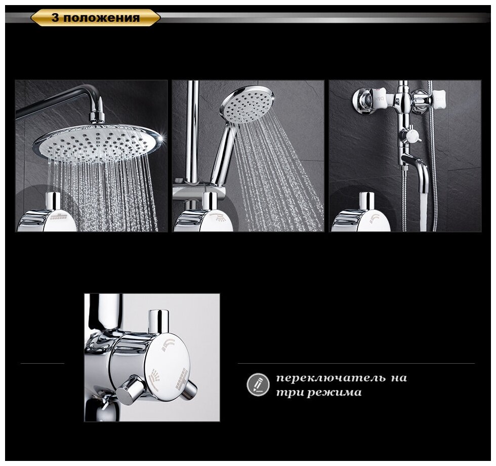 | Дополнительная информация | высота стойки для душа: 1066 мм; диаметр душевой лейки: 103 мм; диаметр верхнего душа: 210 мм |