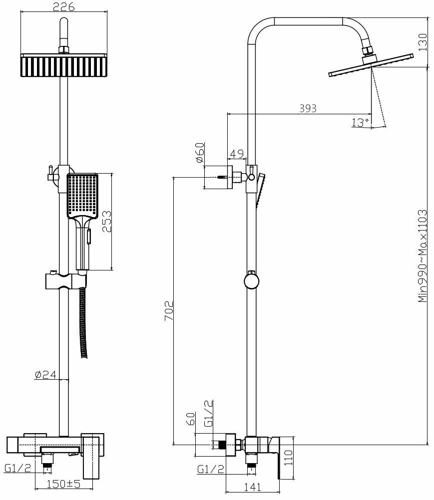 | Комплектация | смеситель - 1 шт. / дивертор - 1 шт. / душевая штанга - 1 шт. / душевая лейка - 1 шт. / душевой шланг - 1 шт. / тропический душ - 1 шт. / держатель душевой лейки - 1 шт. / пластиковый аэратор - 1 шт. |