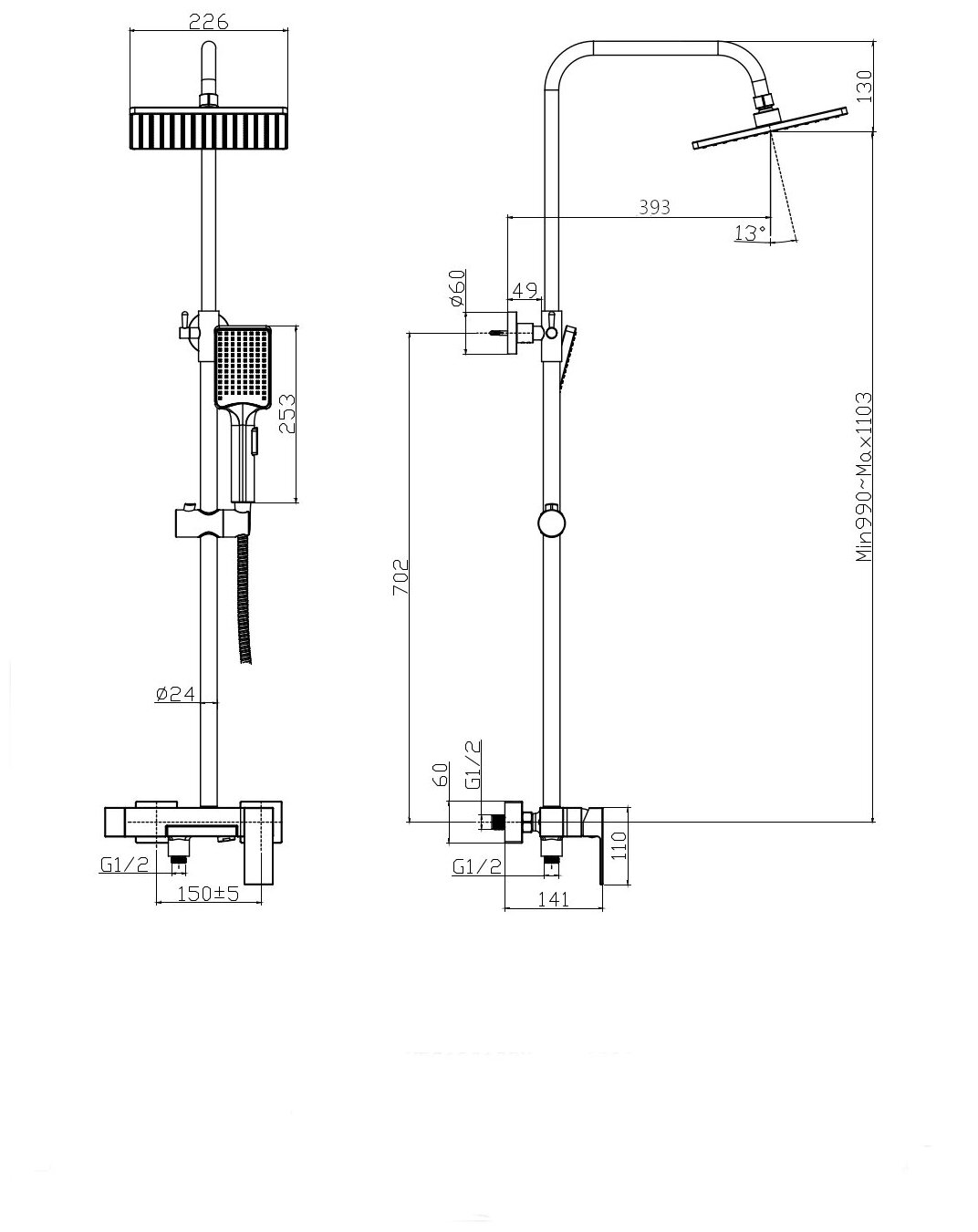 RUSH Встроенная душевая система RUSH Thira (TR3635-41Black)