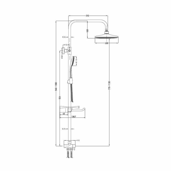 | Дополнительная информация | высота стойки для душа: 1300 мм; диаметр верхнего душа: 226 мм |