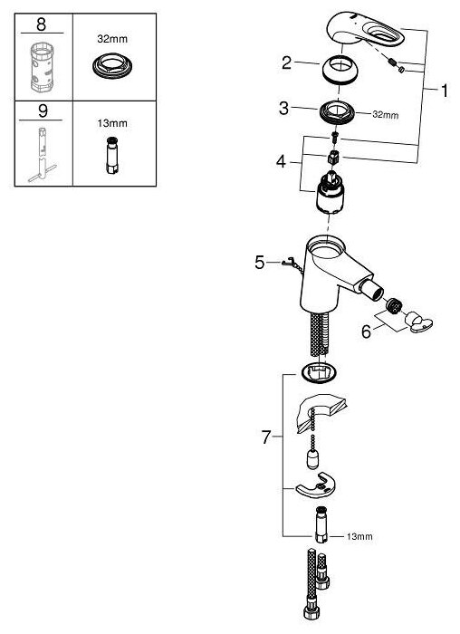 Смеситель для биде GROHE Eurostyle new с цепочкой, хром (33566003)