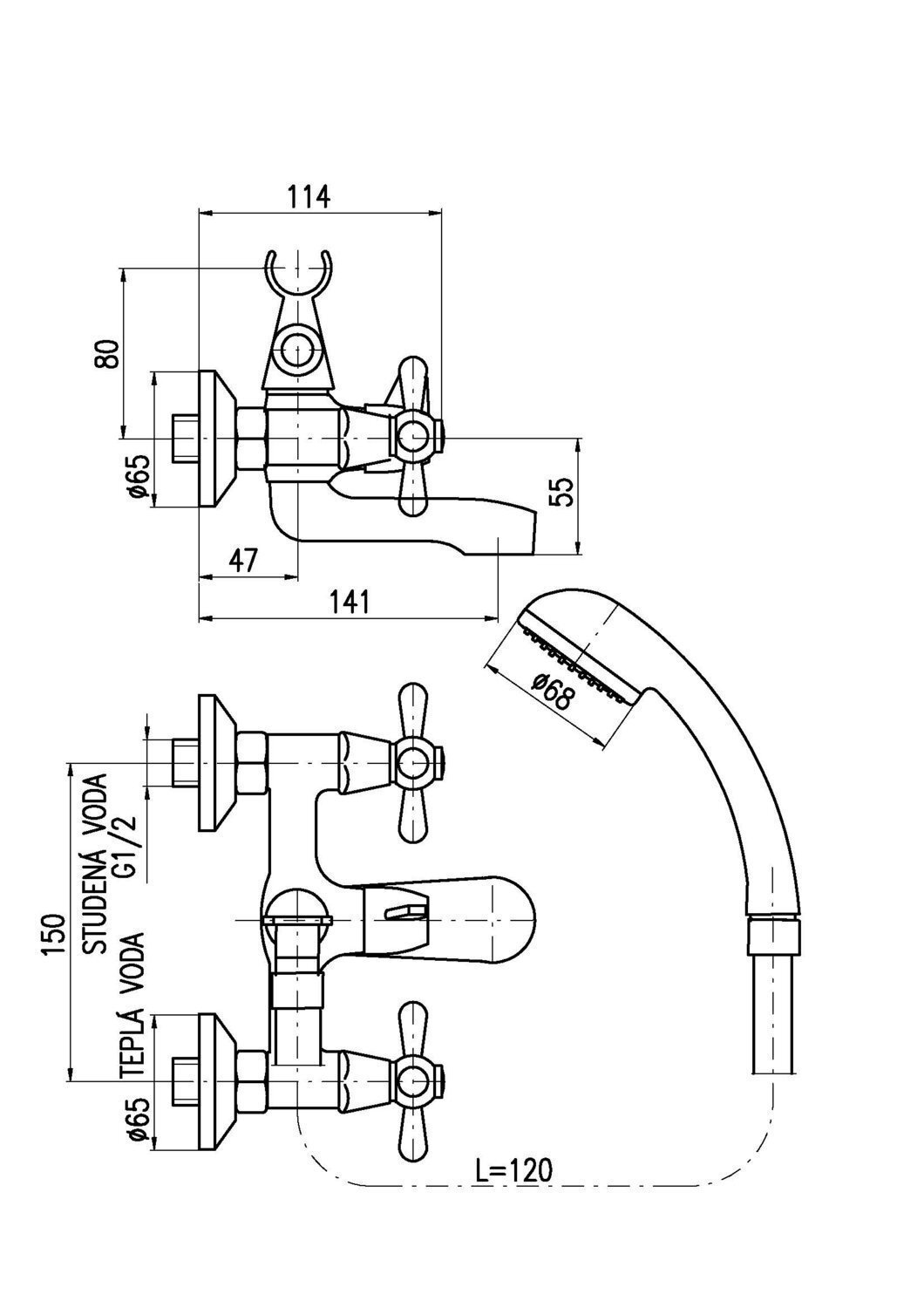 Смеситель для ванны с душем Rav Slezak Morava MK154.5/1