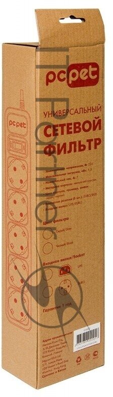 Сетевой фильтр PC Pet AP01006-E-G 1.8м (5 розеток) серый (пакет ПЭ) интересное: