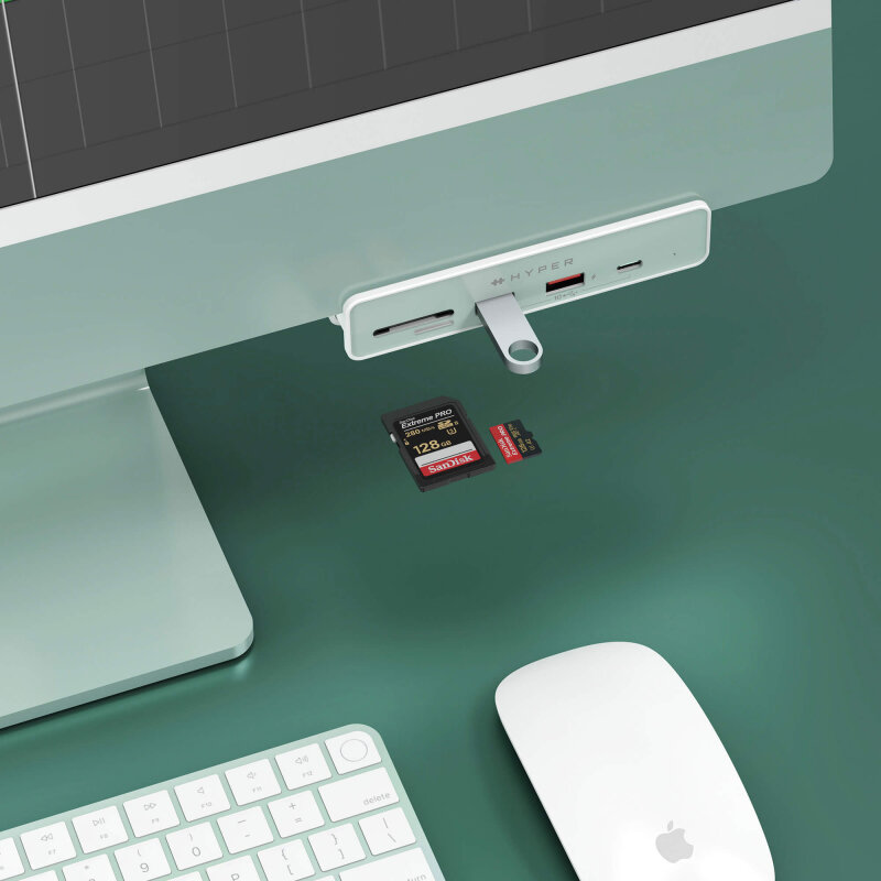 Многопортовый адаптер HYPER с кабель-коннектором USB-C для iMac 24 дюйма (2021) (Белый / White)