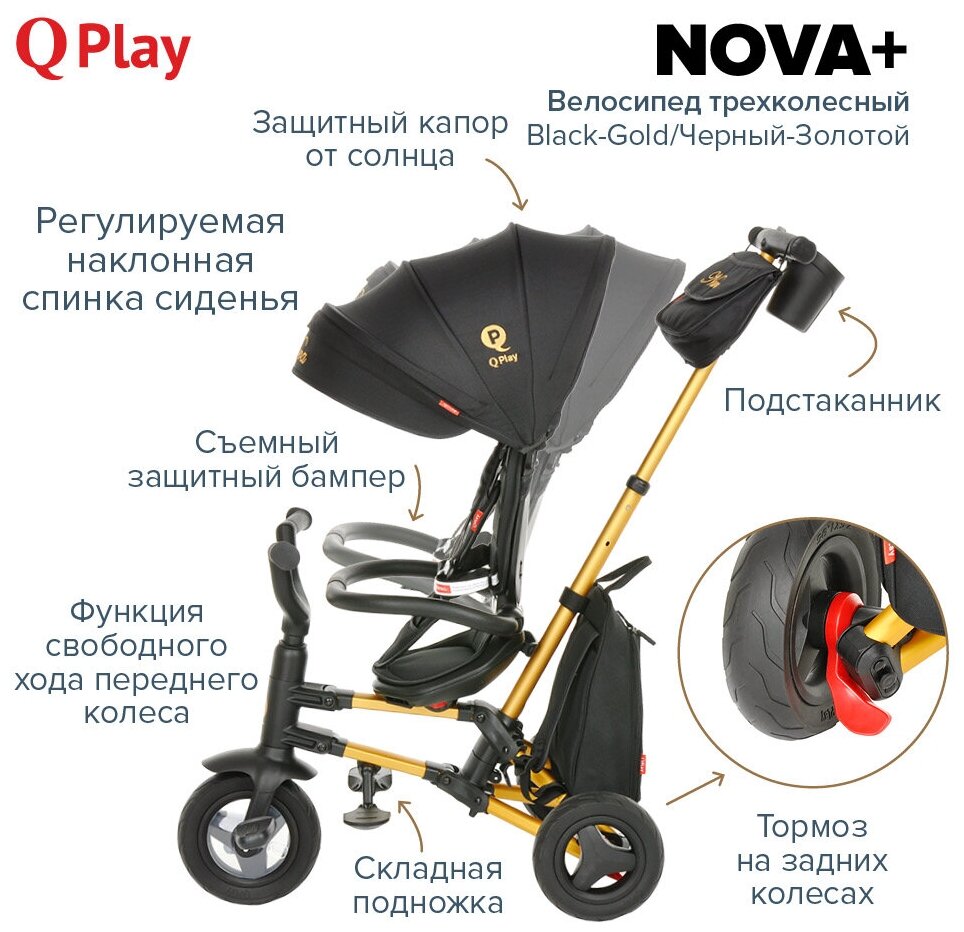 СохранитьТрехколесный складной велосипед-коляска с поворотной сидушкой QPlay Nova Plus Black/Gold Черный-Золотой интересное: