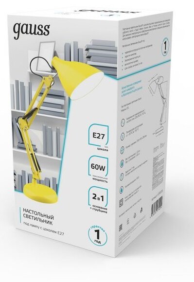 Настольная лампа Gauss GTL003 60W 220-240V E27 желтый струбцина и основание 1/12