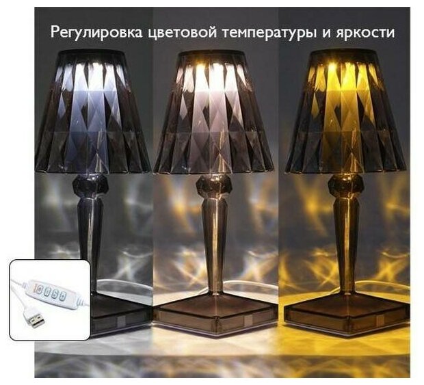 Светильник светодиодный CTL1-USB 3Вт 120лм 5В 2SMD IP20 диммер: 2700-3000К/4000-4500К/6000-6500К ночник настольный черн. кристалл акрил | код 5040908 | ФАZА ( 1шт. )
