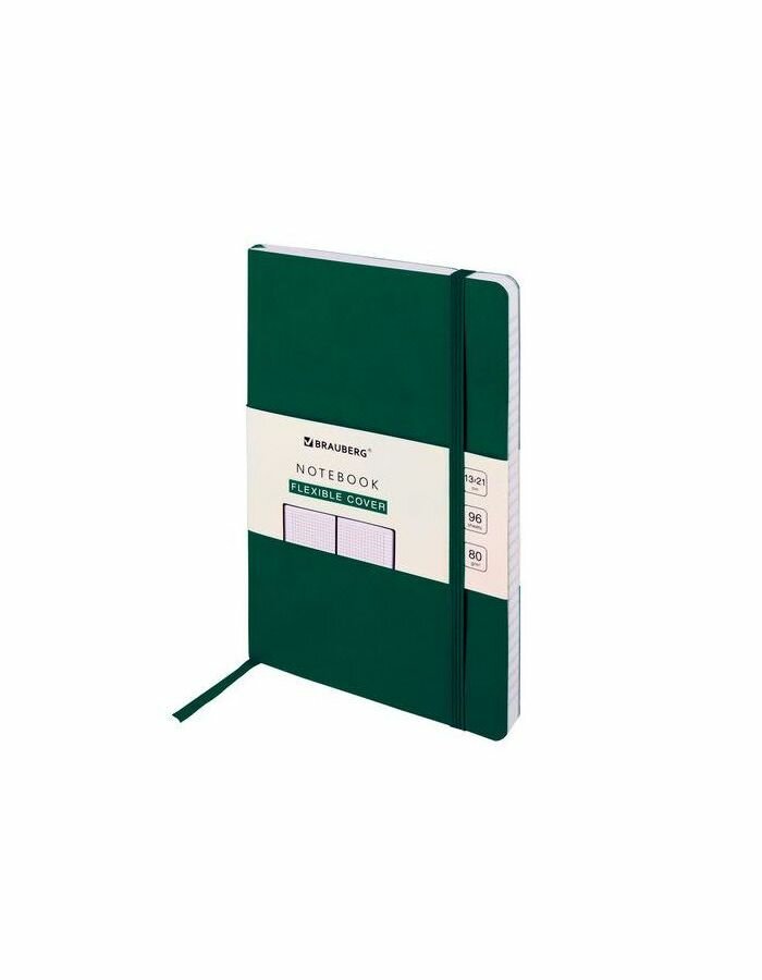 Купить Блокнот А5 (130х210 мм), BRAUBERG ULTRA, под кожу, 80 г/м2, 96 л., клетка, темно-зеленый, 113007