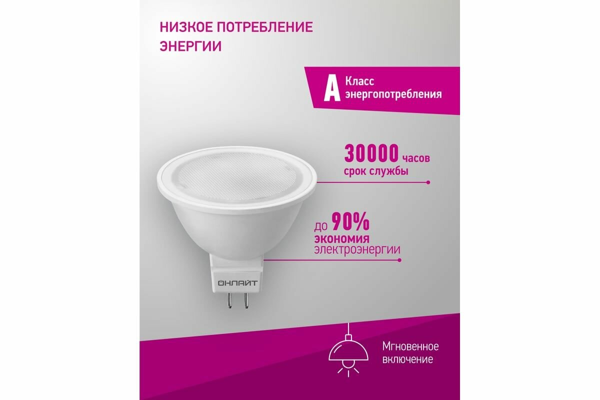Светодиодная лампа MR16 онлайт 61 889 OLL-MR16-10-230-3K-GU5.3, цена за 1 шт.