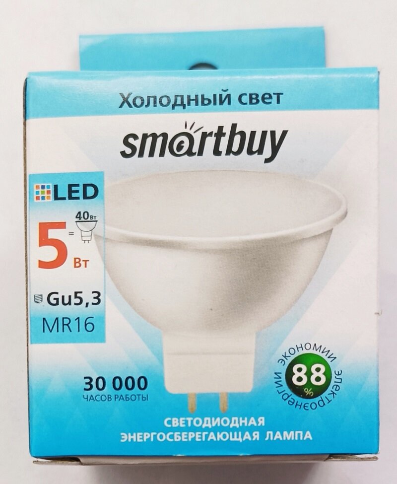 Лампа светодиодная SMARTBUY SBL-GU5.3-05-40K-N 5 Вт, белый